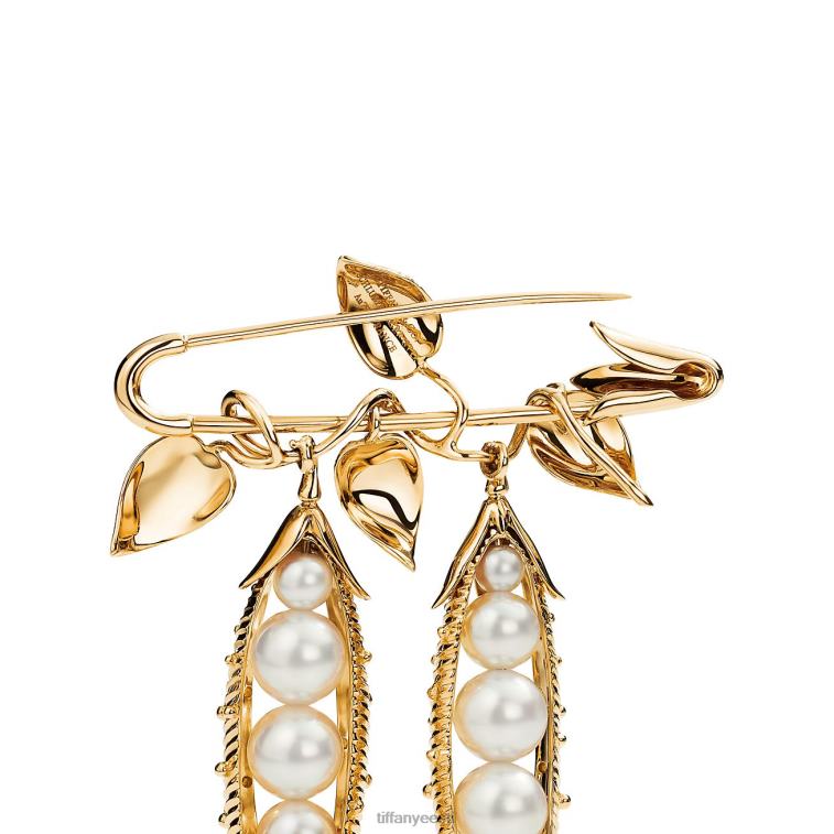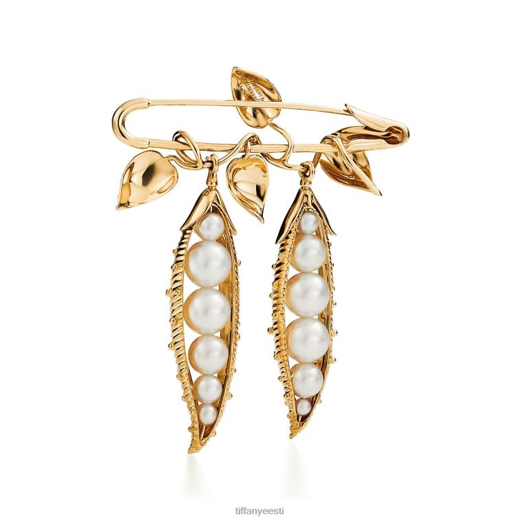 Jean Schlumbergeri visionäärne looming kuulub maailma kõige keerukamate kujunduste hulka. Õrnad 18k kollase kullaga lehed ja läikivad kultiveeritud pärlid iseloomustavad seda silmapaistvat prossi, muutes lihtsa hernejala motiivi kütkestavaks kujunduseks.