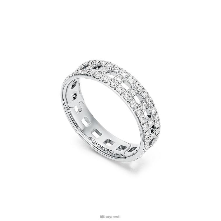 Graafilised nurgad ja puhtad jooned segunevad, et luua Tiffany t kollektsiooni ilus selgus. selle sõrmuse paksudel vahelduvatel linkidel on t-täht, mis on kujutatud silmatorkavates sillutiste teemantides.