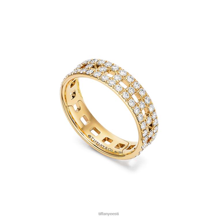 Tiffany t tõeline lai sõrmus 18k kullast sillutiste teemantidega, 5,5 mm lai.