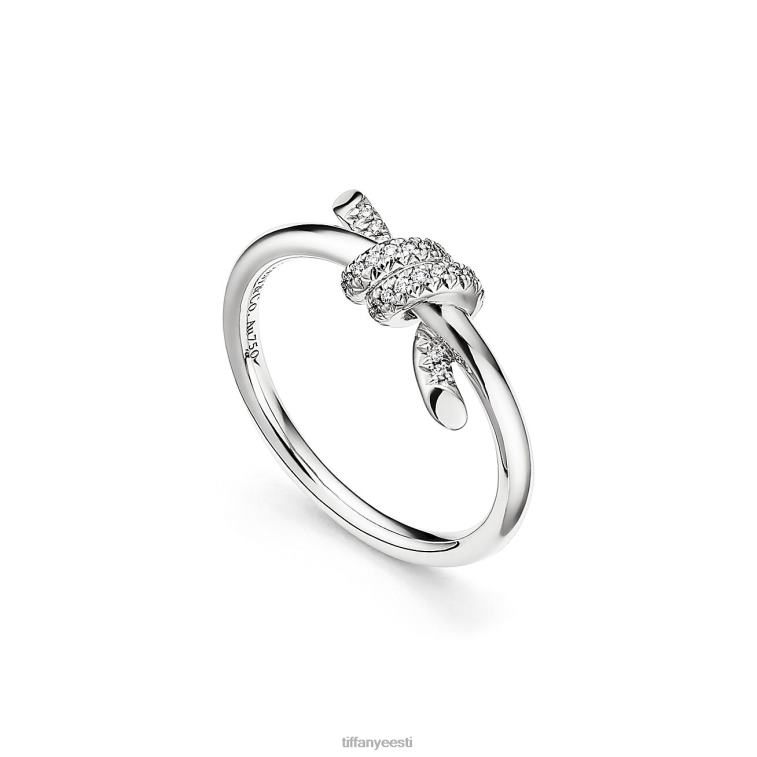 Tiffany sõlme tunnusmotiivi põimunud otsad sümboliseerivad inimestevaheliste sidemete jõudu. Tasakaalustades tugevust ja elegantsi, on iga tiffany sõlme disain keerukas meisterlikkuse saavutus. see sõrmus on valmistatud valgest kullast ja käsitsi poleeritud, et saavutada sära. iga ümmargune briljantne teemant, mis on spetsiaalselt valitud vastama Tiffany kõrgetele standarditele, on käsitsi seatud täpse nurga alla, et maksimeerida sära. kandke seda sõrmust eraldi või koos klassikaliste siluettidega, et luua ootamatut sidumist.