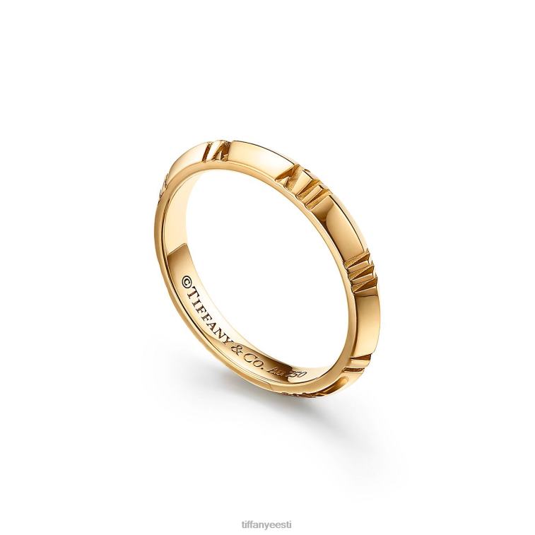 Kõrgelt poleeritud 18k kollane kuld ja õrnad rooma numbrid iseloomustavad seda suletud kitsa sõrmuse stiili. selle disaini klanitud noaserva profiil – maja kood alates Tiffany kihlasõrmuse kasutuselevõtust 1886. aastal – on suurendatud skaalal julge visuaalse mõju saavutamiseks. kantavad embleemid, mis on inspireeritud rooma numbritest New Yorgi lipulaeva poe ikoonilisel kellal, atlas x kollektsioon tuletab meelde, et tuleb võtta aega enda kätesse ja hinnata kõige olulisemat. see virnastatav sõrmus näeb üksi kantuna välja sama stiilne kui kombineerituna teiste erineva laiusega atlas x rõngastega.märkus, et graveeritud esemed tarnitakse pärast isadepäeva.