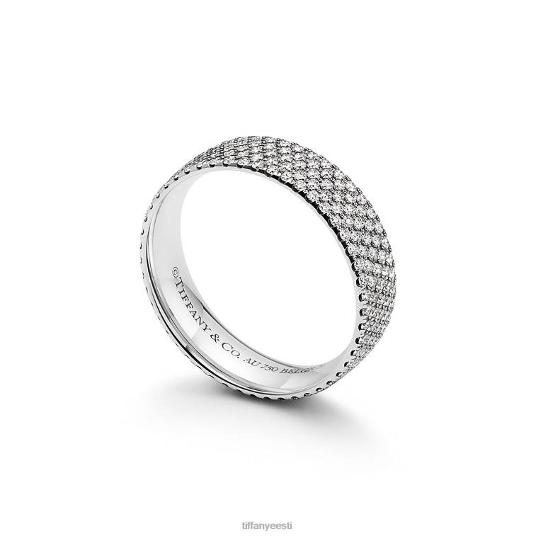 tiffany metro viierealine 18k valgest kullast teemantidega sõrmus.