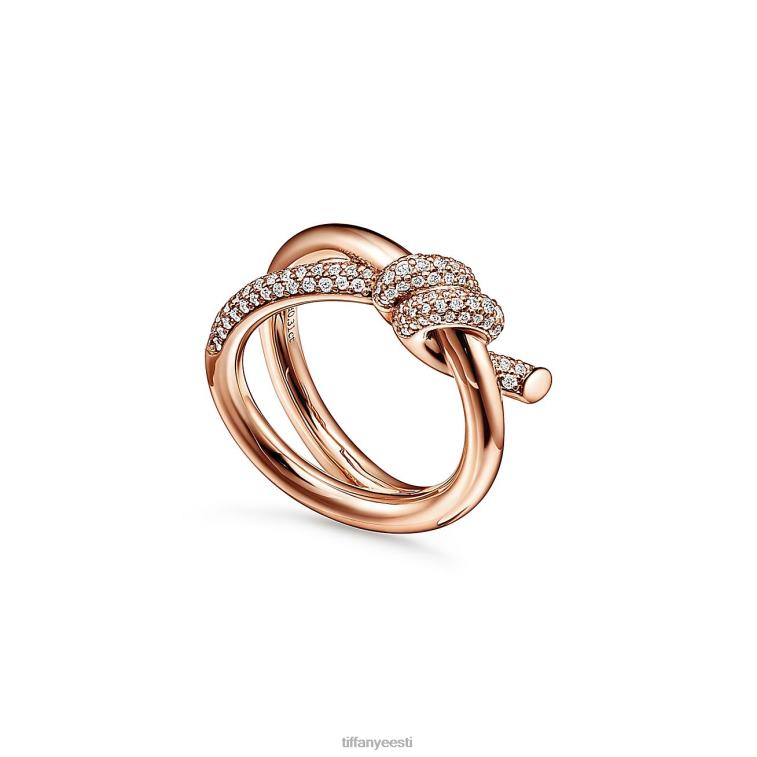Tiffany sõlme kaherealine sõrmus roosast kullast teemantidega