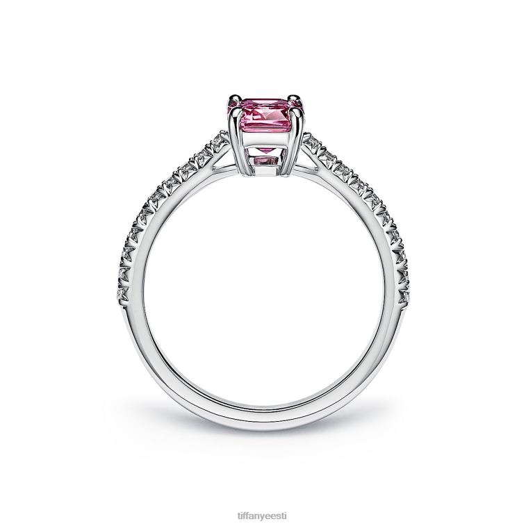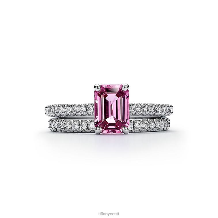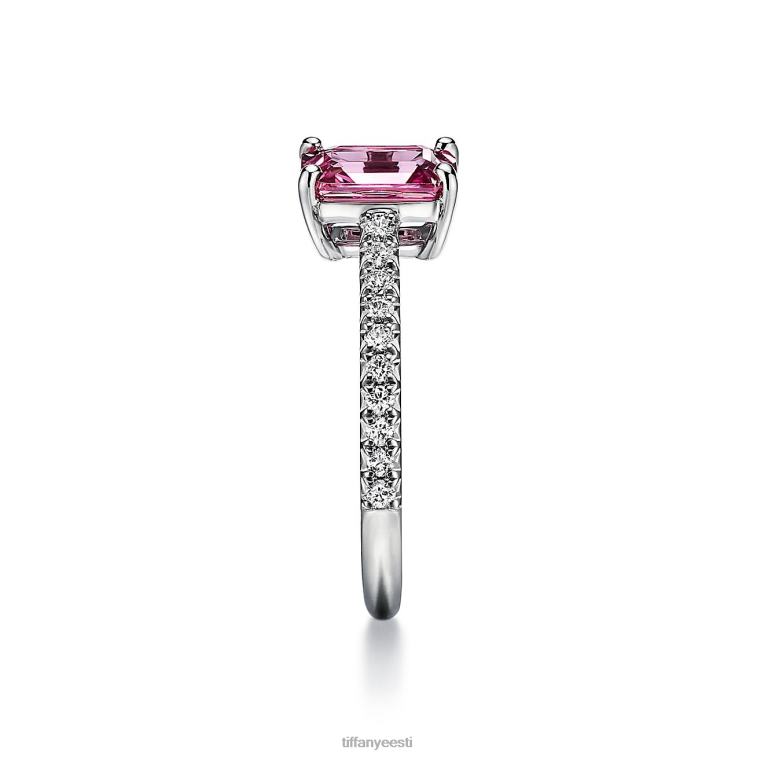 tiffany novo smaragdlõikega roosa safiirist plaatina sõrmus sillutusteemantidega