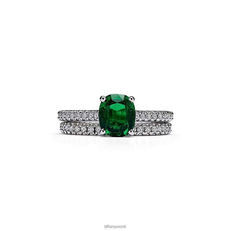 Tiffany novo polsterdatud smaragdsõrmus plaatinast sillutusteemantidega