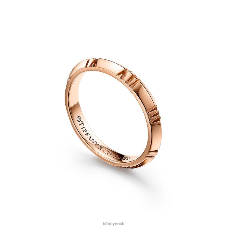 Kõrgelt poleeritud 18k roosa kuld ja õrnad rooma numbrid iseloomustavad seda suletud kitsa sõrmuse stiili. selle disaini klanitud noaserva profiil – maja kood alates Tiffany kihlasõrmuse kasutuselevõtust 1886. aastal – on suurendatud skaalal julge visuaalse mõju saavutamiseks. kantavad embleemid, mis on inspireeritud rooma numbritest New Yorgi lipulaeva poe ikoonilisel kellal, atlas x kollektsioon tuletab meelde, et tuleb võtta aega enda kätesse ja hinnata kõige olulisemat. see virnastatav sõrmus näeb üksi kantuna välja sama stiilne kui kombineerituna teiste erineva laiusega atlas x rõngastega.Märkus, graveeritud esemed tarnitakse pärast isadepäeva.