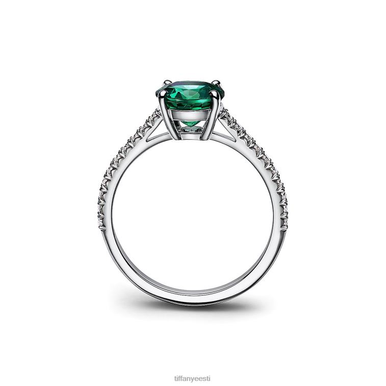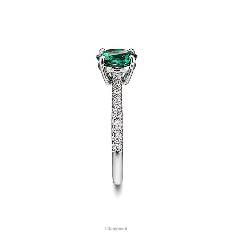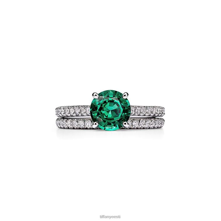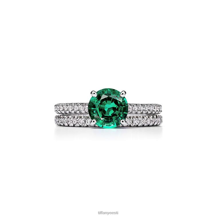 tiffany novo ümmargune smaragdsõrmus plaatinast sillutusteemantidega