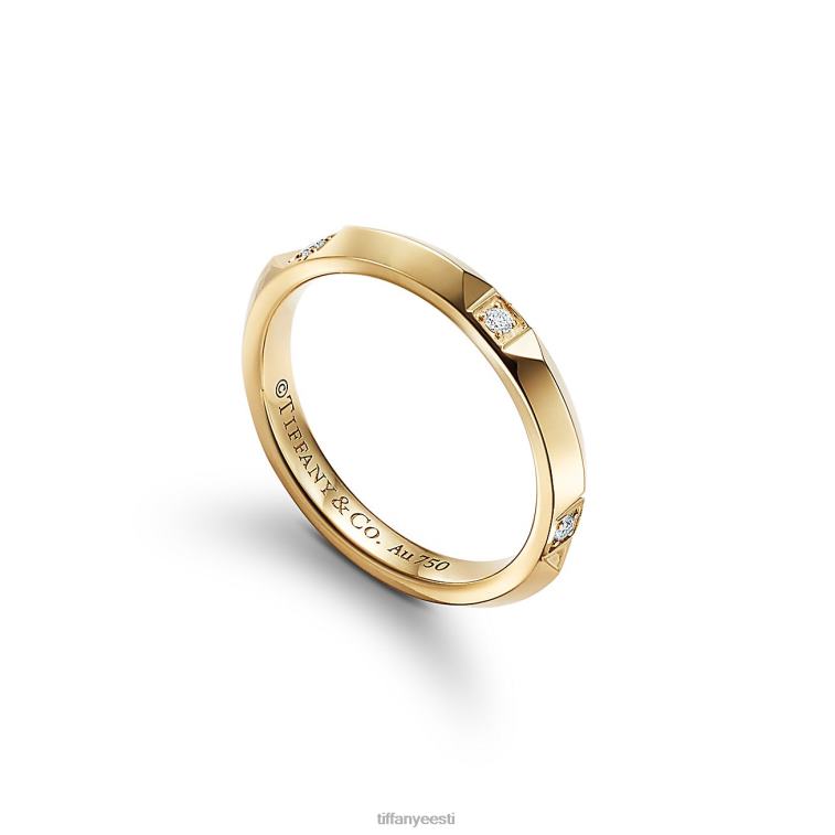 Keeruliste kaldus servadega rõngassõrmus on täiuslik täiendus tõelisele Tiffany kihlasõrmusele. kandke ühte sõrmust pulmapaelana või kahte üksteise külge asetatuna, et saada julge välimus.Märkus, graveeritud esemed toimetatakse kohale pärast isadepäeva.