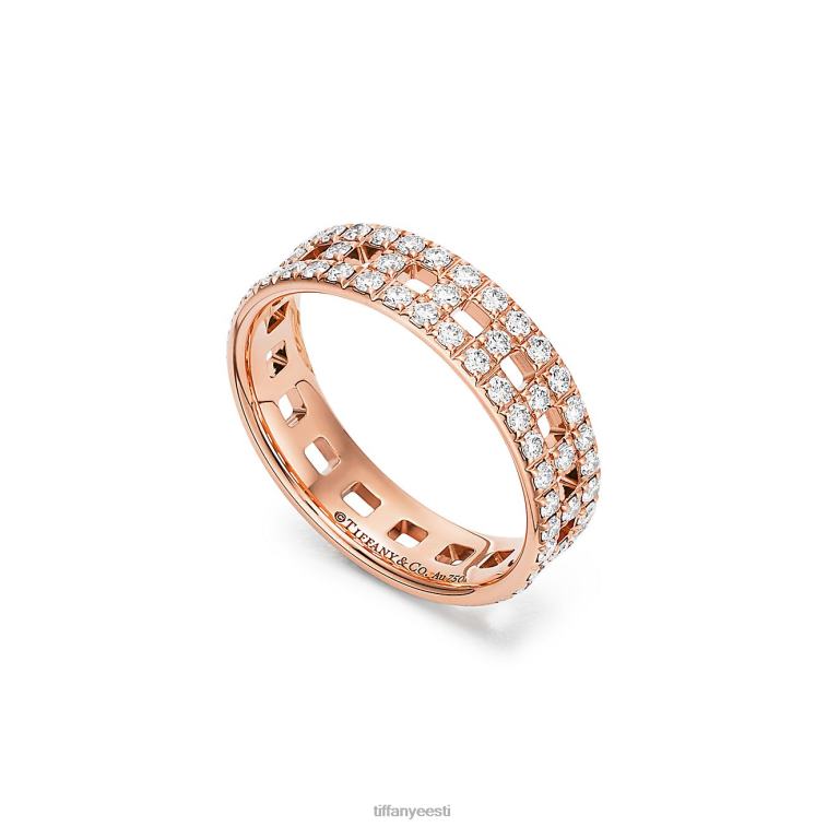 Tiffany t tõeline lai sõrmus 18k roosast kullast sillutiste teemantidega, 5,5 mm lai.
