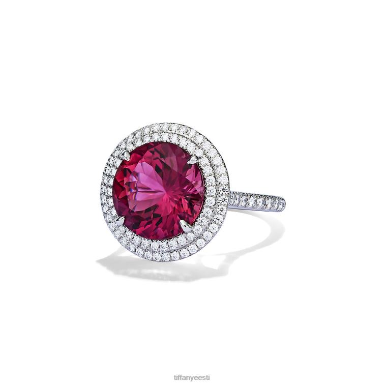 plaatinast sõrmus roosa turmaliini ja teemantidega