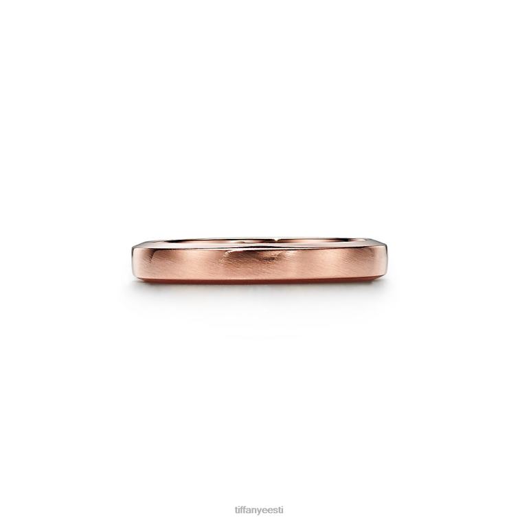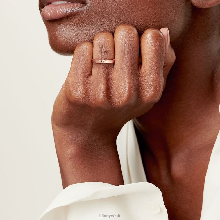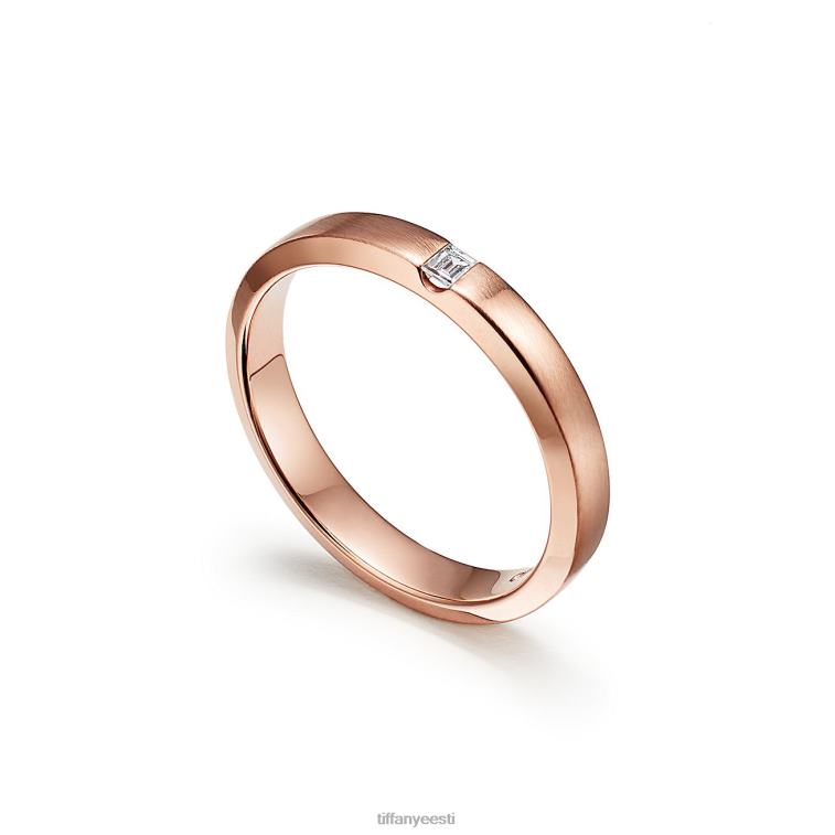 Charles Tiffany seadekollektsioonis on moodsa paari jaoks mõeldud kaasaegsed bändisõrmuse siluetid. selle harjatud satiinviimistlusega tekstureeritud roosast kullast sõrmuse keskelt kumab baguette teemant.Märkus, graveeritud esemed toimetatakse kohale pärast isadepäeva.