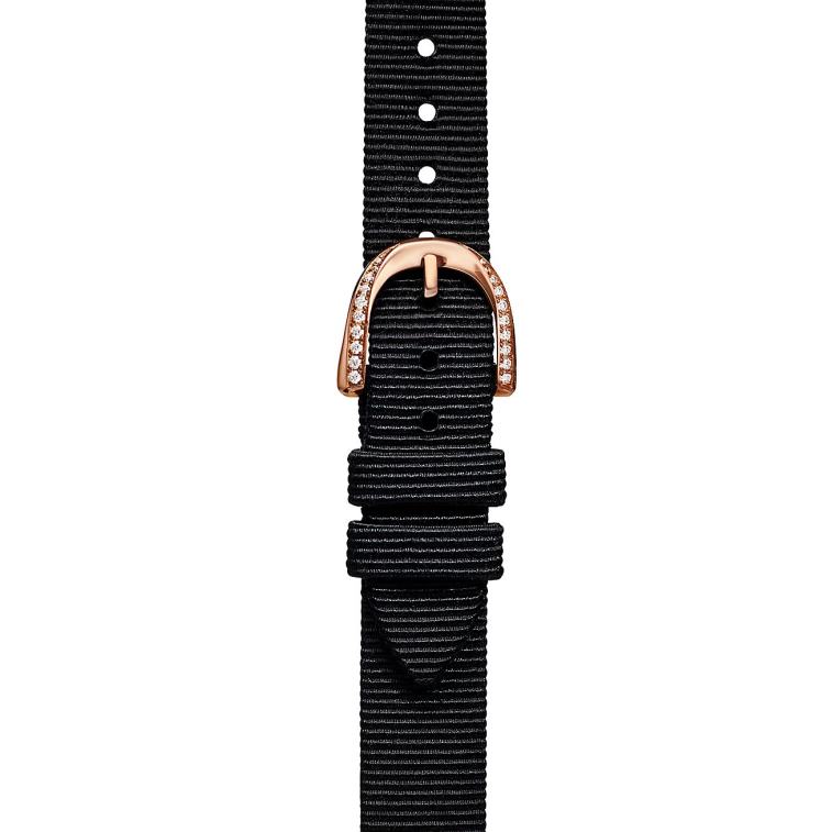 • must grosgrain lint koos 18k roosast kullast pandlaga ümarate briljantsete teemantidega