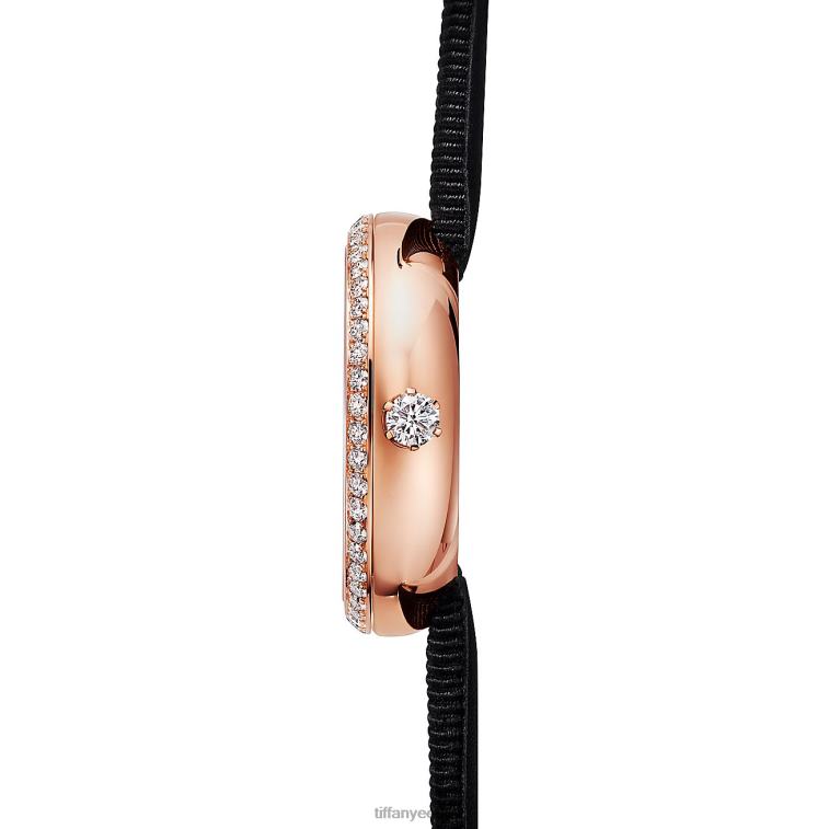 Tiffany igavikukellad tuletavad meile meelde, et elame praeguses hetkes. inspireeritud seeriast vintage tiffany & co. 1960. ja 70. aastate reklaamid, sihverplaadil on igal tunnimärgil erinev teemantlõige: ümmargune briljant, baguette, cushion, tiffany tõsi, markiis, asscher, süda, pirn, ovaal, smaragd, kolmnurk ja printsess. kella kroon on inspireeritud Tiffany kihlasõrmust ja võtab kasutusele selle ikoonilise kuueharulise seadistuse – kaunis täiendus korpust ümbritsevate ümmarguste briljantsete teemantide halole. sellel roosakuldsel kellal on must grosgrain lindi rihm, mille pandlal on ümmargused briljantsed teemandid. see silmapaistev viimistletud meisterlikkuse väljapanek austab meie pärandit pakkuda maailma parimaid teemante siis, nüüd ja alati.
