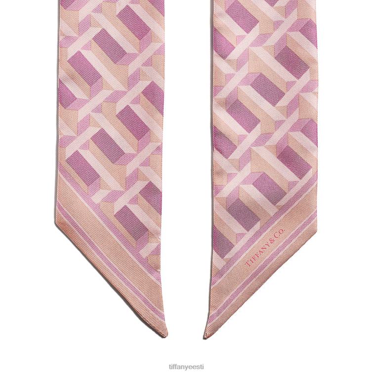 Tiffany t kollektsioon on inspireeritud meie lemmikkirjast. julge vahelduvate t-de muster tonaalses kristallroosa paletis kaunistab seda siidist lintsalli. siduge tiffany salli rõngaga või seo kunstlikult ümber oma lemmikkäekoti.