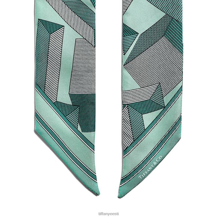 Tiffany t kollektsioon on inspireeritud meie lemmikkirjast. sellel siidist lintsallil on meie ikoonilises Tiffany sinises värvitoonis julge t-motiiv, mis on segatud geomeetriliste vormidega. siduge tiffany salli rõngaga või seoge kunstlikult ümber oma lemmikkäekoti.