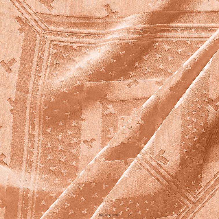 Tiffany t kollektsioon on inspireeritud meie lemmikkirjast. see ruudukujuline sall esitleb silmatorkavat arhiivimustrit tantsivatest ts-dest korallroosa siidist žakaardisega. tiffanysinine valtsitud ääris lisab elegantse viimistlusdetaili. siduge see stiil sallirõngaga või seo kunstlikult ümber oma lemmikkäekoti.